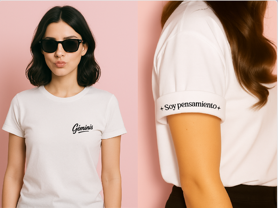 Cada playera tiene un bordado minimalista con el nombre de tu signo al frente, y en la manga un mantra personalizado que refleja tu característica más poderosa: tu fuego, tu calma, tu intuición, tu disciplina…
