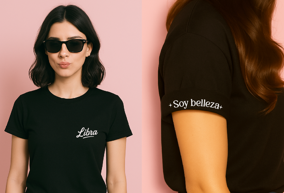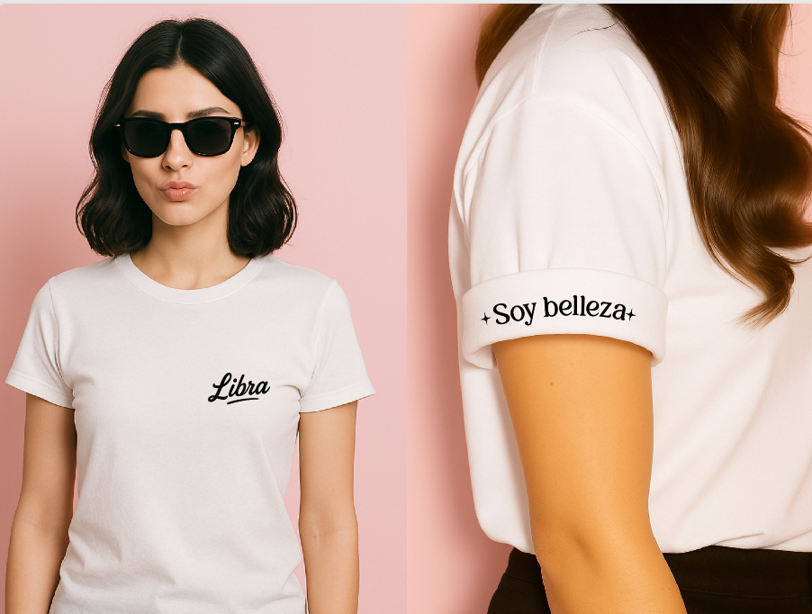 Cada playera tiene un bordado minimalista con el nombre de tu signo al frente, y en la manga un mantra personalizado que refleja tu característica más poderosa: tu fuego, tu calma, tu intuición, tu disciplina…
